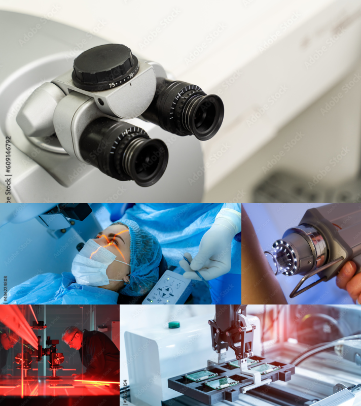 Excimer Laser-Systeme finden in vielfältigen Industrien Anwendung. Neben dem Schwerpunkt Medizintechnik sind sie in der Halbleiterherstellung und in der Materialbearbeitung im Einsatz.